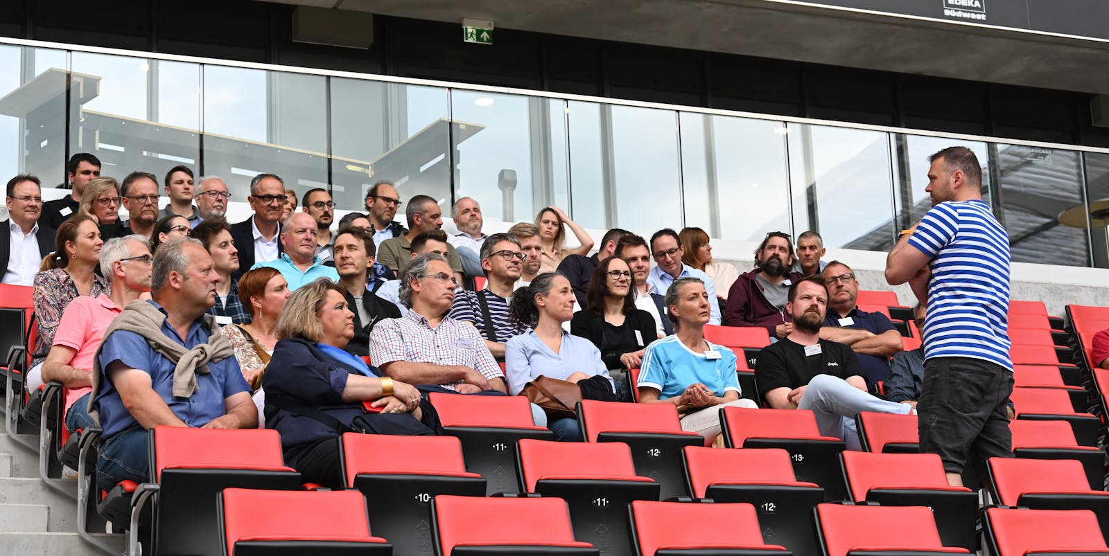 Unser Gastgeber, der SC Freiburg gewährte uns bei Führungen spannende Einblicke in sonst verschlossene Bereiche des Europa-Park-Stadions. Hanno Franke, Abteilungsleiter Marketing und Gesellschaftliches Engagement beim SC Freiburg, schilderte uns viele Hintergründe zu Vermarktung sowie zum Stadionbau und erzählte Anekdoten über den Erstligisten. Und selbstverständlich kam das Netzwerken nicht zu kurz: Bei Wein und Häppchen nutzten wir die Gelegenheit zu Gesprächen in der wirklich tollen Location.
