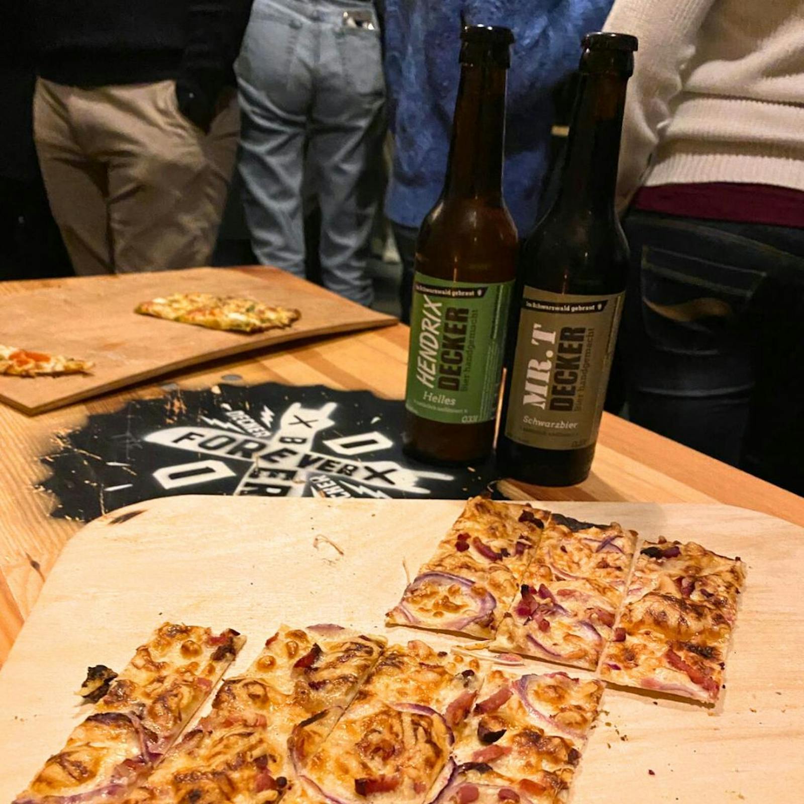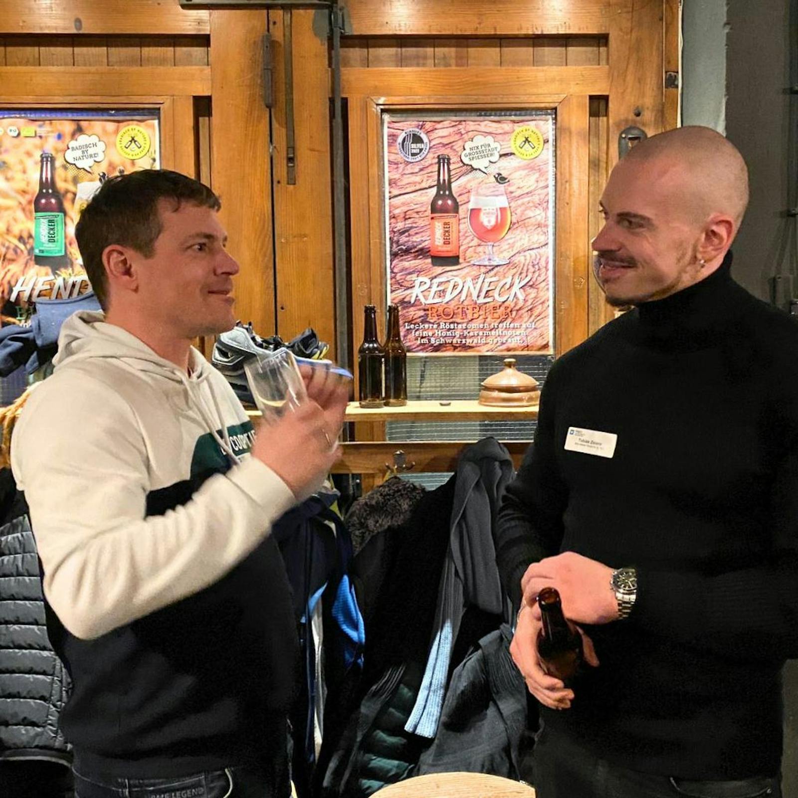 Ein Highlight des Abends war der spannende Vortrag von Co-Founder und Geschäftsführer David Schneider, der mit faszinierenden Fakten rund ums Bier für Begeisterung sorgte – wusstet ihr, dass Bier im Mittelalter so beliebt war, dass der Konsum reguliert werden musste? Passend dazu gab es handgebrautes Decker Bier und köstlichen Flammenkuchen.