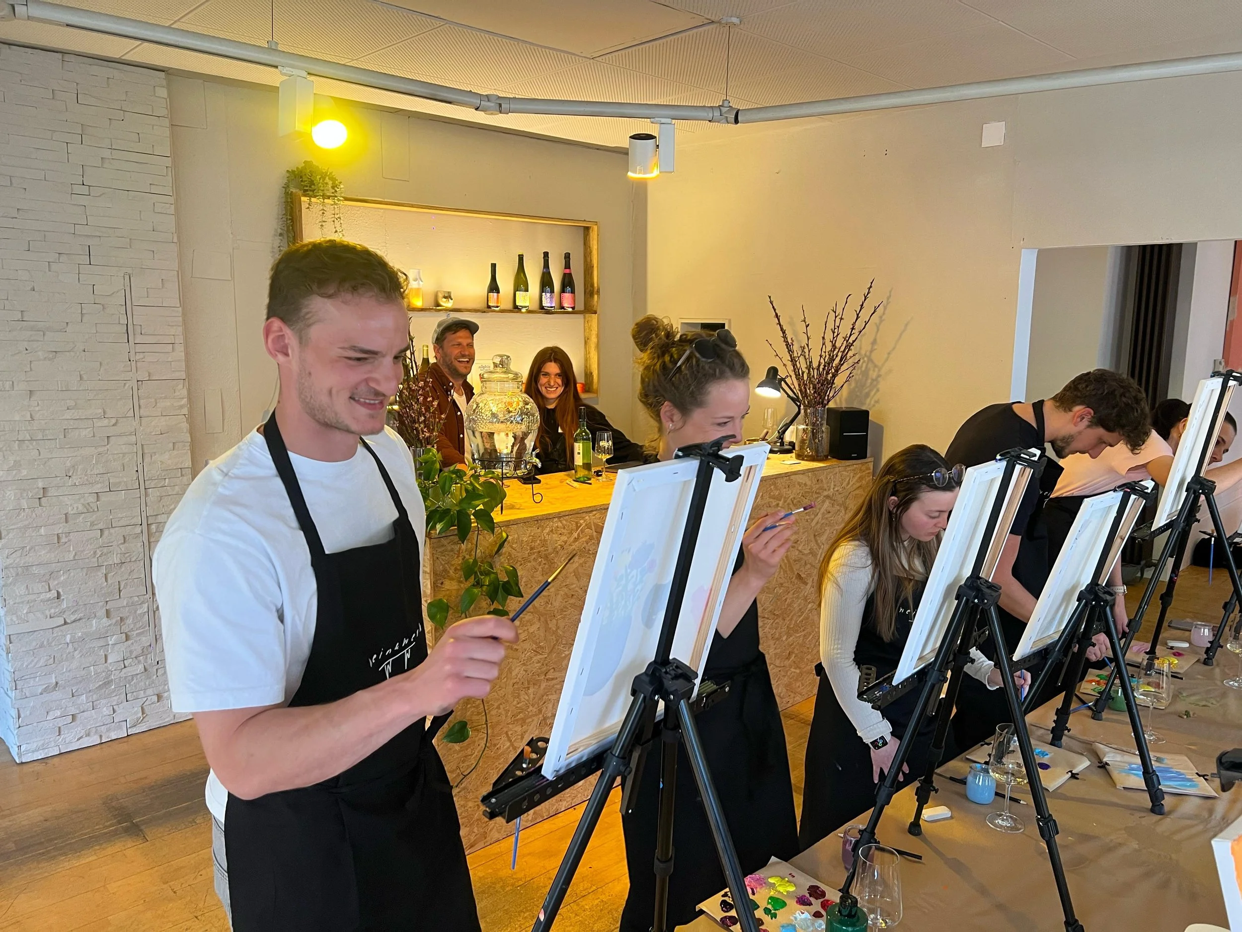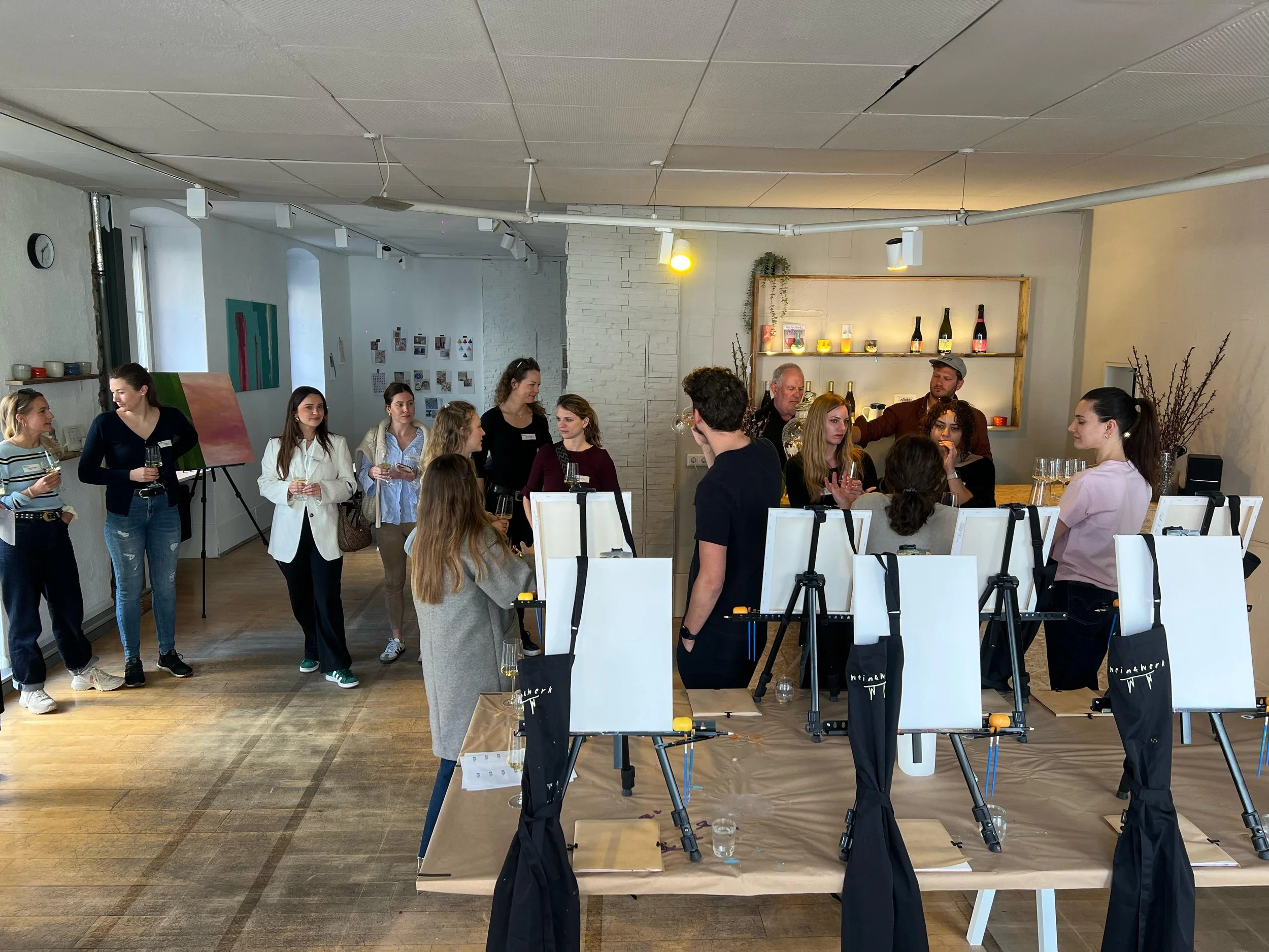 Unsere Young Professionals hatten kürzlich die Gelegenheit, einen besonderen Abend bei Wein & Werk in der Freiburger Wiehre zu verbringen – einer charmanten Mischung aus Atelier und Vinothek, die kreative Workshops mit Weinbegleitung anbietet.